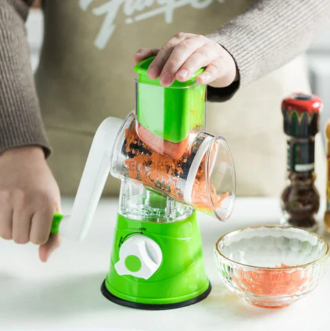¿Cansado de pasar horas en la cocina cortando y rallando? ¡Ya no más! Nuestro Molino Rallador Multifuncional está diseñado para ahorrar tiempo, añadir color a tus platos y convertir la preparación de alimentos en una tarea fácil y divertida. 🍎🥒🧀