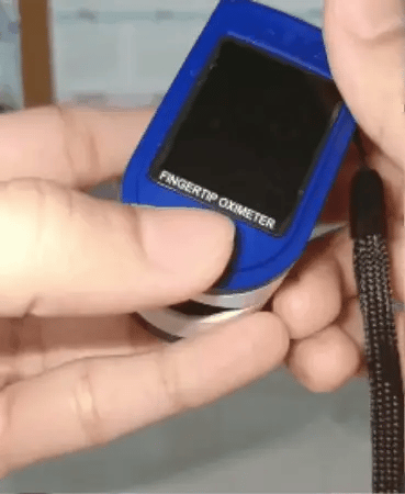 1️⃣ Coloca el oxímetro en tu dedo índice.