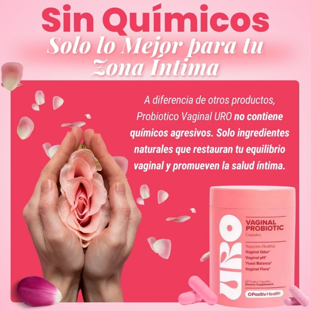 URO® Probíotico Vaginal está formulado con cepas probíoticas específicas para fortalecer tu microbiota íntima, mejorar la salud digestiva y mantener un pH vaginal equilibrado.