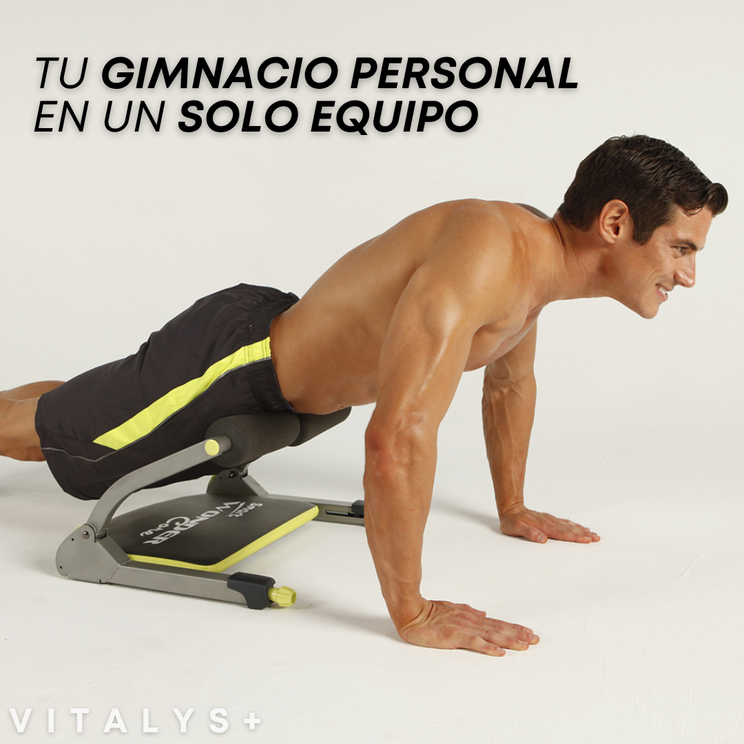 El Smart Wonder Core® combina 6 ejercicios en un solo equipo, activando abdomen, brazos, piernas y glúteos al mismo tiempo.